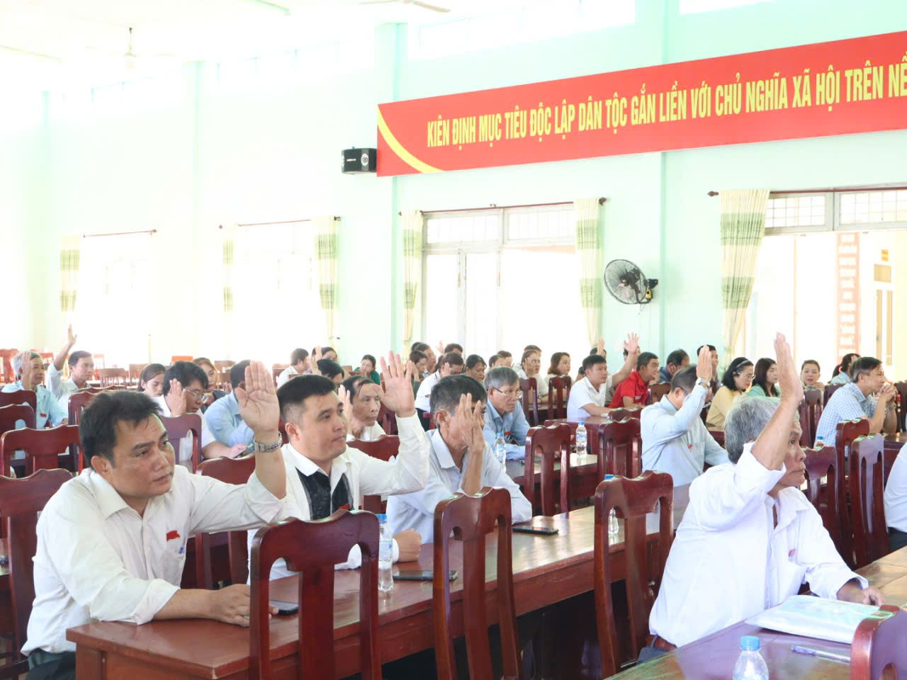 Đồng chủ tọa kỳ họp gồm các đồng chí: Nguyễn Văn Khâm – Bí thư Đảng ủy, Chủ tịch HĐND xã; Nguyễn Kiện Toàn – Ủy viên Ban Thường vụ Đảng ủy, Phó Chủ tịch HĐND xã.