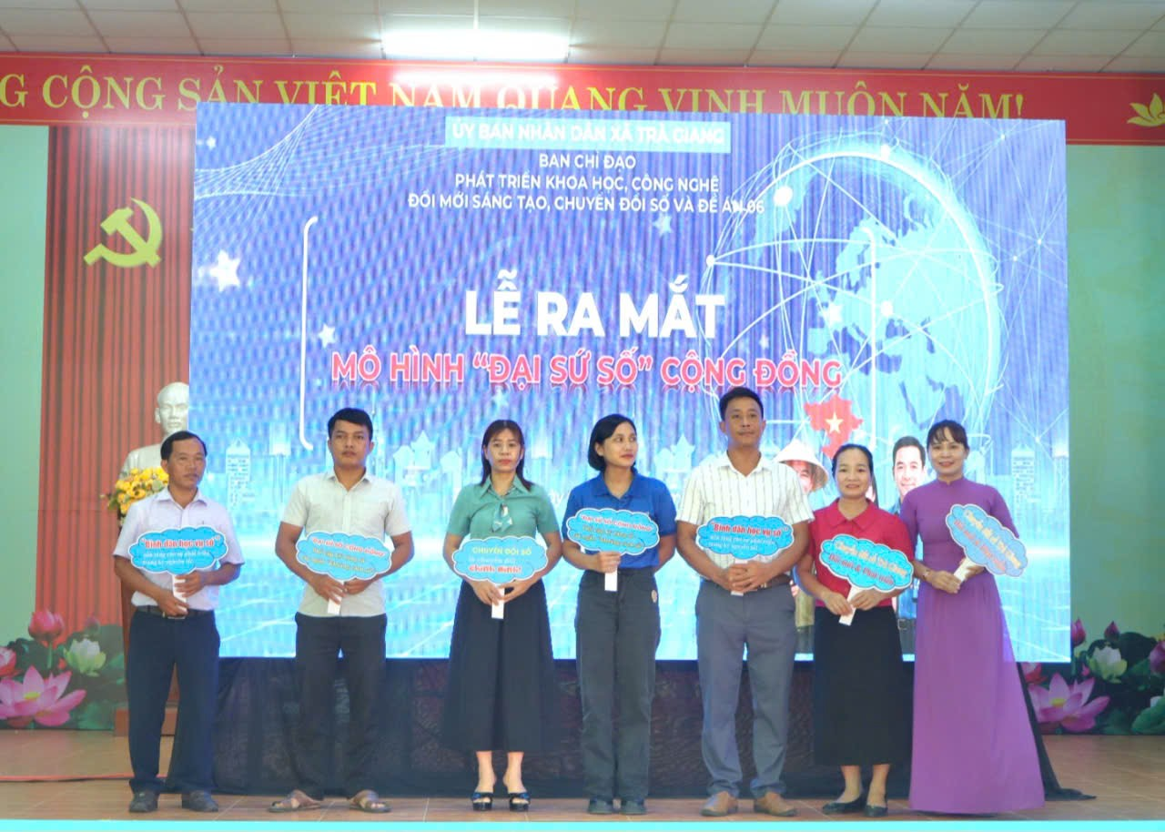 Sáng ngày 01/10/2025, UBND xã Trà Giang đã long trọng tổ chức lễ phát động phong trào “Cả nước thi đua đổi mới, sáng tạo, chuyển đổi số” và phong trào “Bình dân học vụ số”, đồng thời ra mắt mô hình “Đại sứ số” tại cộng đồng. Một điểm nhấn quan trọng tại Lễ phát động đó là chính thức ra mắt mô hình “Đại sứ số” trong cộng đồng.