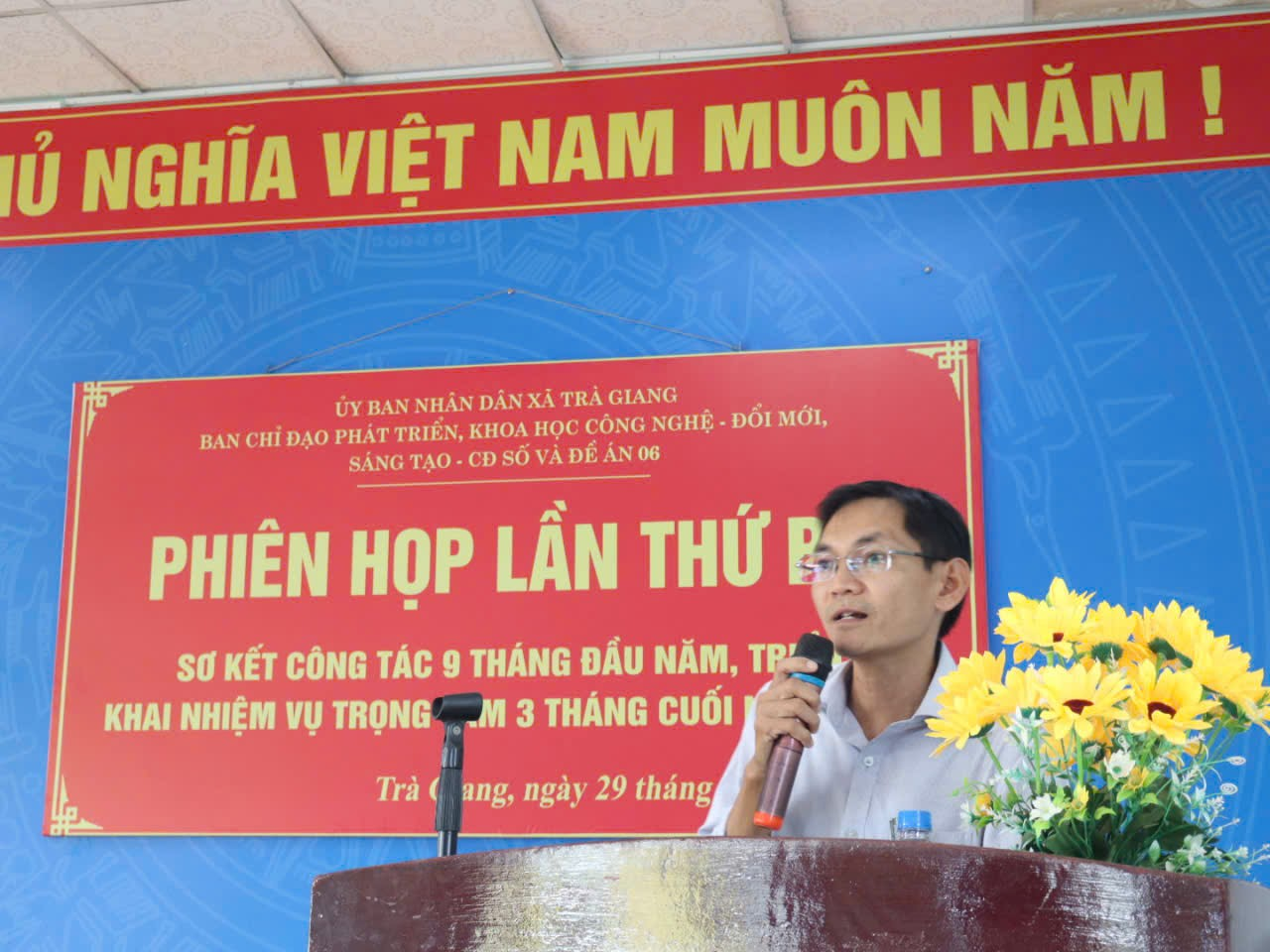 Chiều ngày 29/9/2025, Ban chỉ đạo phát triển, khoa học – công nghệ, đổi mới, sáng tạo – Chuyển đổi số và Đề án 06 xã Trà Giang tổ chức Phiên họp lần thứ ba để sơ kết công tác 9 tháng đầu năm, triển khai nhiệm vụ trọng tâm 3 tháng cuối năm 2025 và bàn kế hoạch tổ chức Lễ phát động phong trào Bình dân học vụ số. Cuộc họp do đồng chí Võ Đình Hưng – Phó Bí thư Đảng ủy, Chủ tịch UBND xã, trưởng Ban chỉ đạo chủ trì.
