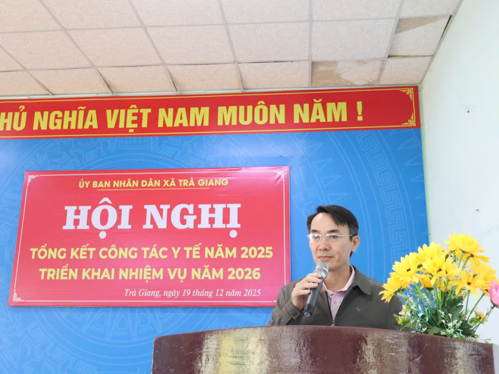 Chiều ngày 19/12/2025, Ủy ban nhân dân xã Trà Giang long trọng tổ chức Hội nghị tổng kết công tác y tế năm 2025, triển khai nhiệm vụ trọng tâm năm 2026. Đồng chí Phạm Văn Phùng – đại diện lãnh đạo UBND xã chủ trì Hội nghị.
