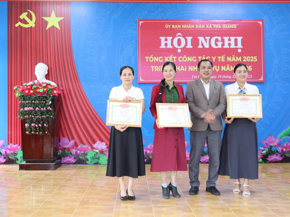 Nhân dịp này, Chủ tịch UBND xã Trà Giang đã trao Giấy khen cho 01 tập thể và 03 cá nhân có thành tích trong thực hiện nhiệm vụ công tác Y tế năm 2025.