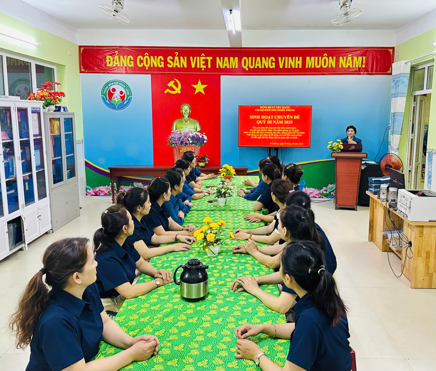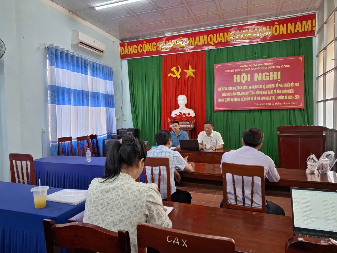 Thực hiện Chỉ thị số 50-CT/TW ngày 23/7/2025 của Ban Bí thư về đổi mới và nâng cao chất lượng sinh hoạt chi bộ, vào ngày 3/10 các chi bộ trực thuộc Đảng bộ xã Trà Giang đã đồng loạt tổ chức sinh hoạt chi bộ tháng 10 và sinh hoạt chuyên đề quý III: Các giải pháp để nâng cao tinh thần trách nhiệm của đội ngũ cán bộ, đảng viên nhằm phụng sự Tổ quốc, phục vụ nhân dân theo tư tưởng, đạo đức, phong cách Hồ Chí Minh. Vận dung các giải pháp đó để nâng cao tinh thần trách nhiệm của đội ngũ cán bộ, đảng viên cơ quan, đơn vị mình gắn với việc triển khai, học tập và quán triệt các nghị quyết quan trọng của Trung ương, của tỉnh và của xã.