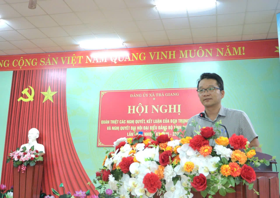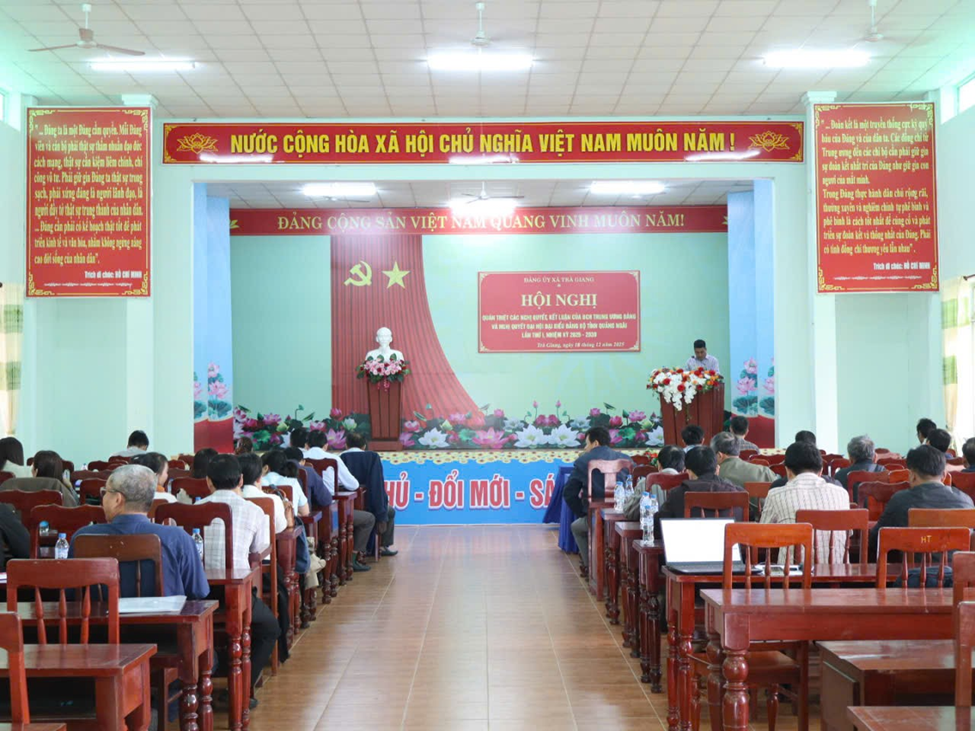 Chiều ngày 18/12/2025, Đảng ủy xã Trà Giang tổ chức Hội nghị quán triệt các Nghị quyết, Kết luận của Ban Chấp hành Trung ương Đảng và Nghị quyết Hội nghị lần thứ II Ban Chấp hành Đảng bộ tỉnh khóa I, cùng các Nghị quyết, Kết luận, Quy định của tỉnh.